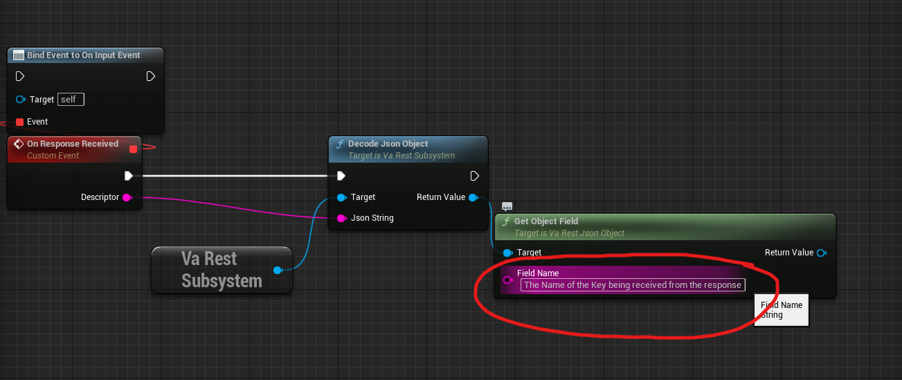 Now get a node “Get Object Field” node and put the name of the Json Key that is being received from the response and you want to use.