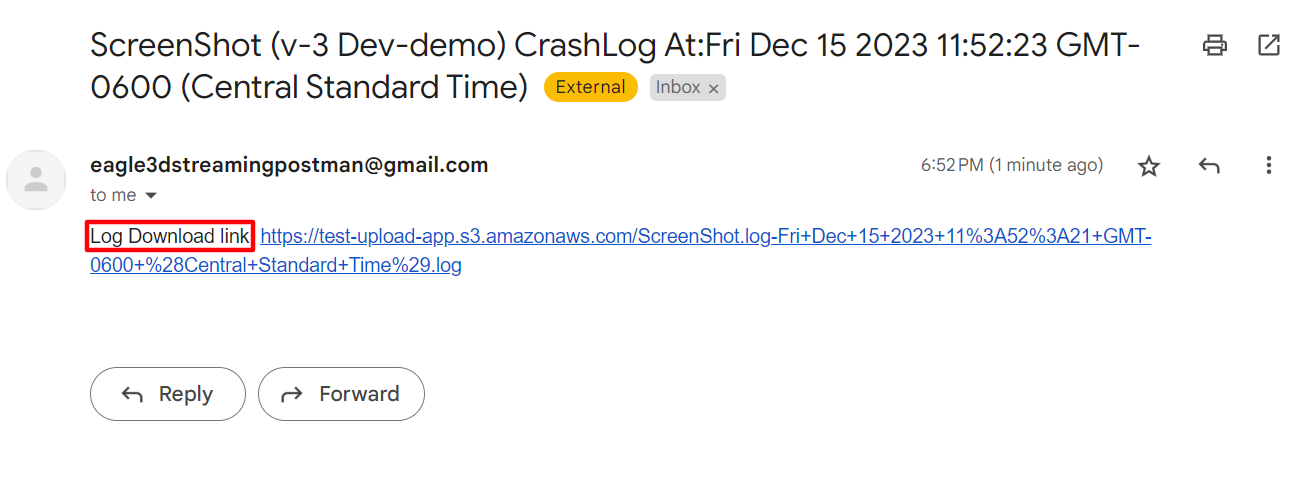 Image 4. Log received in the Mail